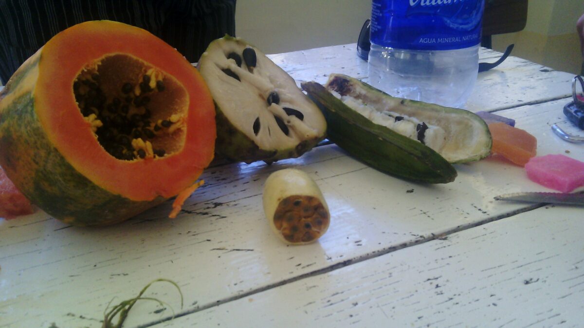 Compramos frutas que para nosotros eran raras: conocÃa a la papaya, pero nunca la habÃa probado. Es hueca por dentro, y su sabor se asemeja al de un durazno grande y desabrido, o al menos eso les pareció a mis papilas inexpertas. También comà chirimoya, en otras partes conocida como guanábana, que me pareció espectacular. El sabor es similar al helado de ananá. Probamos el tumbo, una fruta pequeña y ácida parecida a un saco con huevos de araña. Está llena de pequeñas semillas. La carambola, con forma de estrella alargada, es un cÃtrico con sabor y textura parecida a la naranja. Por último degusté el pacay, fruta que parece un pepino o una chaucha. En su interior contiene semillas revestidas por una pulpa blanca. Lo que se come es la pulpa, que parece algodón de azúcar, solo es un poco más firme y menos dulce. Me encantó ese nombre: pacay. Y todas las frutas me parecieron buenas, incluso las que no me gustaron mucho. Es una sensación difÃcil de describir, pero asà me sentÃ. Supongo que estaba demasiado feliz.