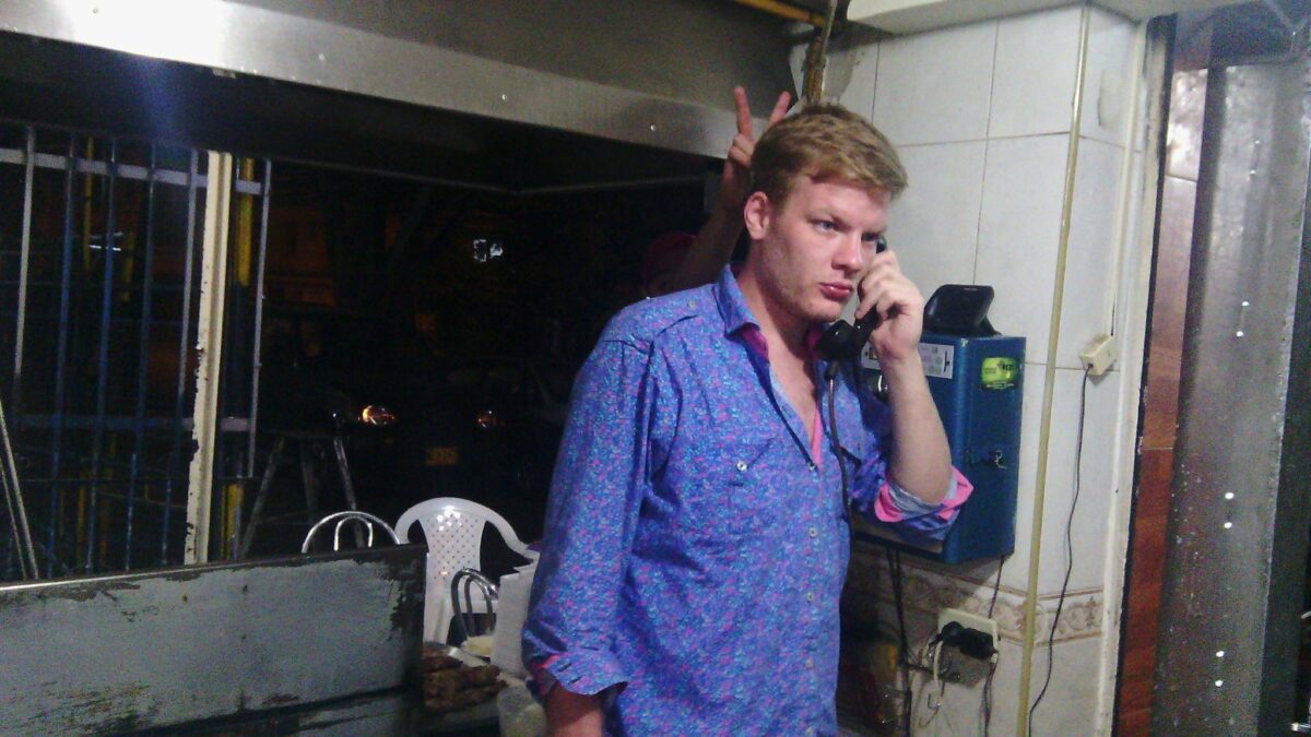 Una noche, mientras todavÃa vivÃa con Celeste, regresé al departamento desde el hostel y un borracho me abordó en la calle para invitarme «ir a las putas», con tanta insistencia que al final le dije que sÃ. Me prestó su camiseta de Brasil —no recuerdo para qué— y yo le dije que me acompañara al edificio, que buscarÃa dinero y después irÃamos «a las putas». SubÃ, me acosté y me dormà al instante. Desperté al dÃa siguiente con una camiseta nueva, que le regalé a Jairo antes de irme, por su amistad. ¡Gracias, Jairo!