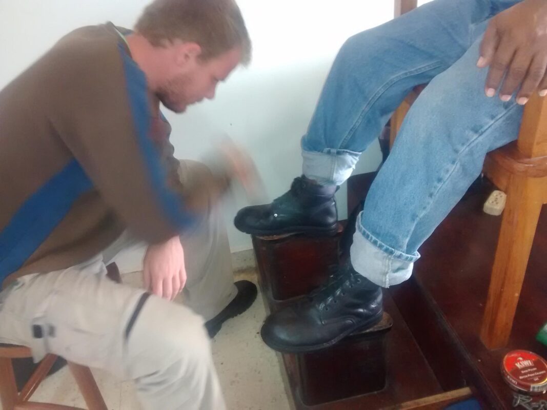 Resignado a mi suerte, traté de hablar con algunos beliceños. Casi todos eran de ascendencia africana. Hablaban raro, pero eran cálidos y amables. Le pregunté a un lustrabotas si me dejaba ganar unos dólares para comer, y dijo que sÃ. Estuve trabajando un par de horas ahÃ.