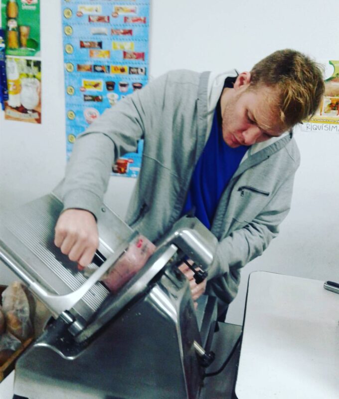 Acá estoy, cortando 150 gramos de jamón con un dolor de cabeza insoportable, producto de una resaca mal curada. Hoy me levanté y rompà mis anteojos al pisarlos. Después me dormà en la bañera y desperté cuando se rebalsó. Me obligué a comer algo para sentirme mejor y darle guerra a las náuseas. Vine a trabajar y tuve que limpiar la mugre que dejaron unos tipos oriundos de otra provincia, que dicho sea de paso, hablaban una especie de dialecto, porque aquello español no era. Después otro flaco me preguntó si podÃa usar el baño y tomar afuera del negocio una cerveza que compró en otro lugar.