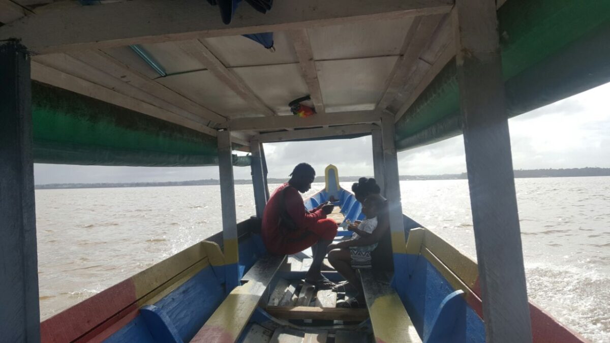 El río Maroni mide cerca de un kilómetro de ancho. Hay barcos que te cruzan por algunas monedas, y vas acompañado de todo tipo de gente: comerciantes, familias, trabajadores.