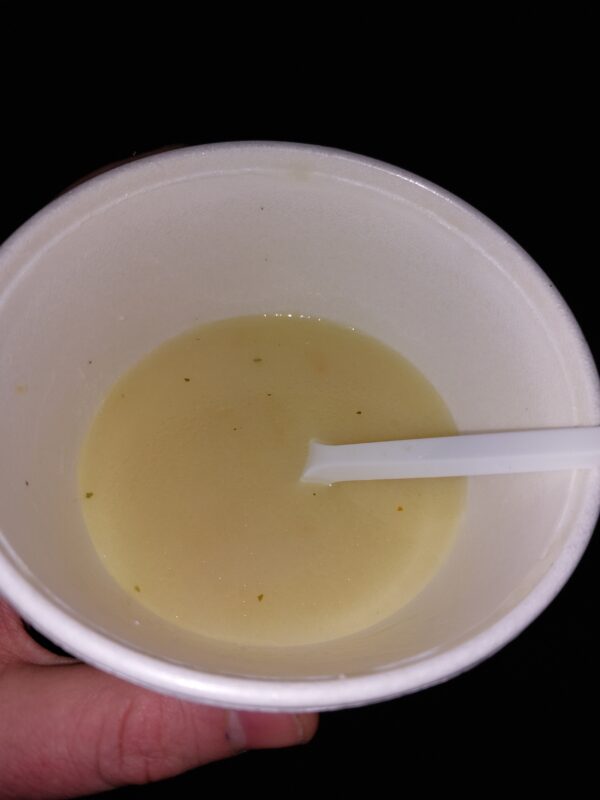 Acepté la oferta, conmovido por la amabilidad. Iryna, la mujer, me trajo un vaso descartable con sopa caliente que parecía venir del paraíso. Durante aquel día no había comido nada más que el panchito polaco.