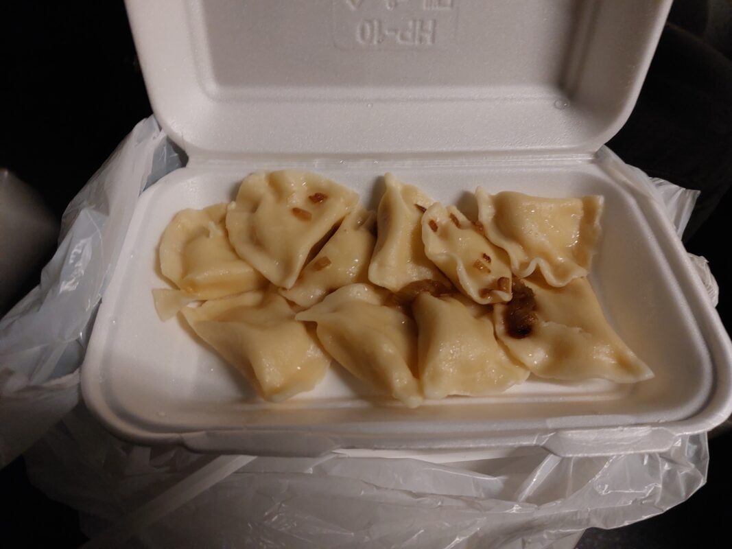 A las 3 de la mañana recibí otro plato de comida: varenyky. Parecían ravioles con forma de empanada. Tampoco tuve que pagar nada y agradecí el gesto de corazón, pues tenía hambre. La comida, aunque fría, era deliciosa. Cualquier cosa menos delicado, el gordo.