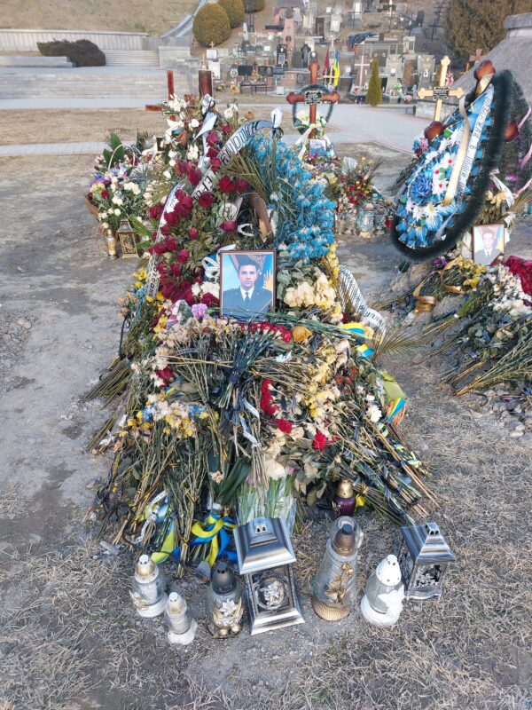 Ese día habían enterrado a tres pibes más: Dmytro Kotenko, de 20 años; Kyrylo Moroz, de 25; y Vassyl Vychyvany, de 28. Llevaban menos de 24 horas bajo tierra.