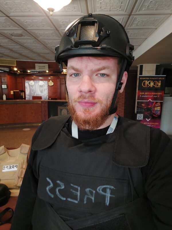 En el hotel conocí a varios periodistas. Fue lo mejor que hice en términos profesionales. Eran buenos de verdad. Entre ellos estaba Joaquín Sánchez Mariño, un argentino. Me dio una mano y terminó regalándome un chaleco y un casco, aunque eran más simbólicos que otra cosa. Tal vez fueran capaces de detener algún pedazo de metralla perdido… pero si alguien decidía apuntar bien, no había chaleco ni casco que valieran. Joaquín tenía otro equipo, de mejor calidad.