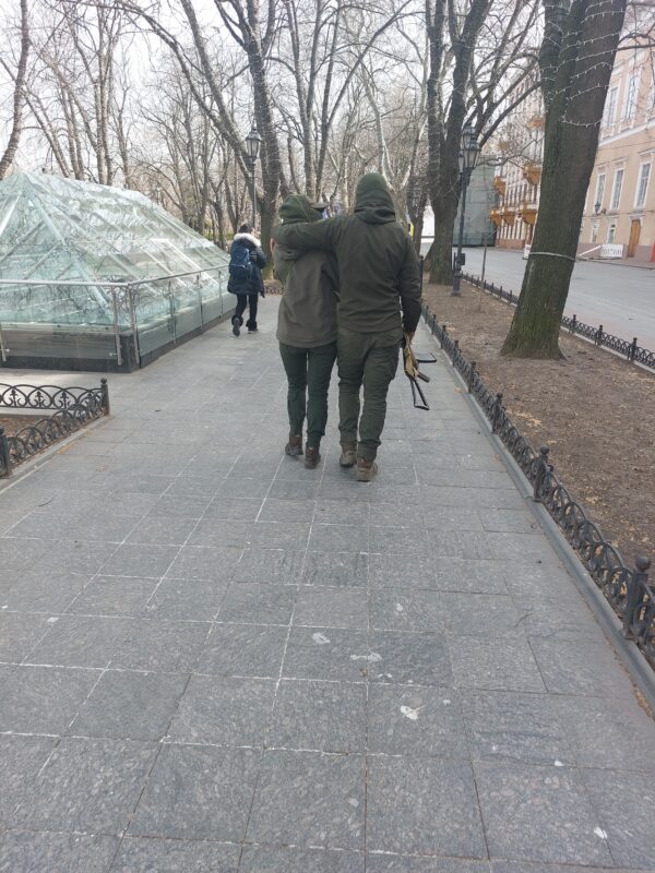 En ese contexto, la única luz que encontré en Odesa vino de rebote. Los periodistas gringos tenían traductora propia y yo, obviamente, no. Un rato después de la discusión, los escuché mientras realizaban una entrevista: dos soldados, un hombre y una mujer, se conocieron en el frente y se enamoraron. Ahora patrullaban juntos.