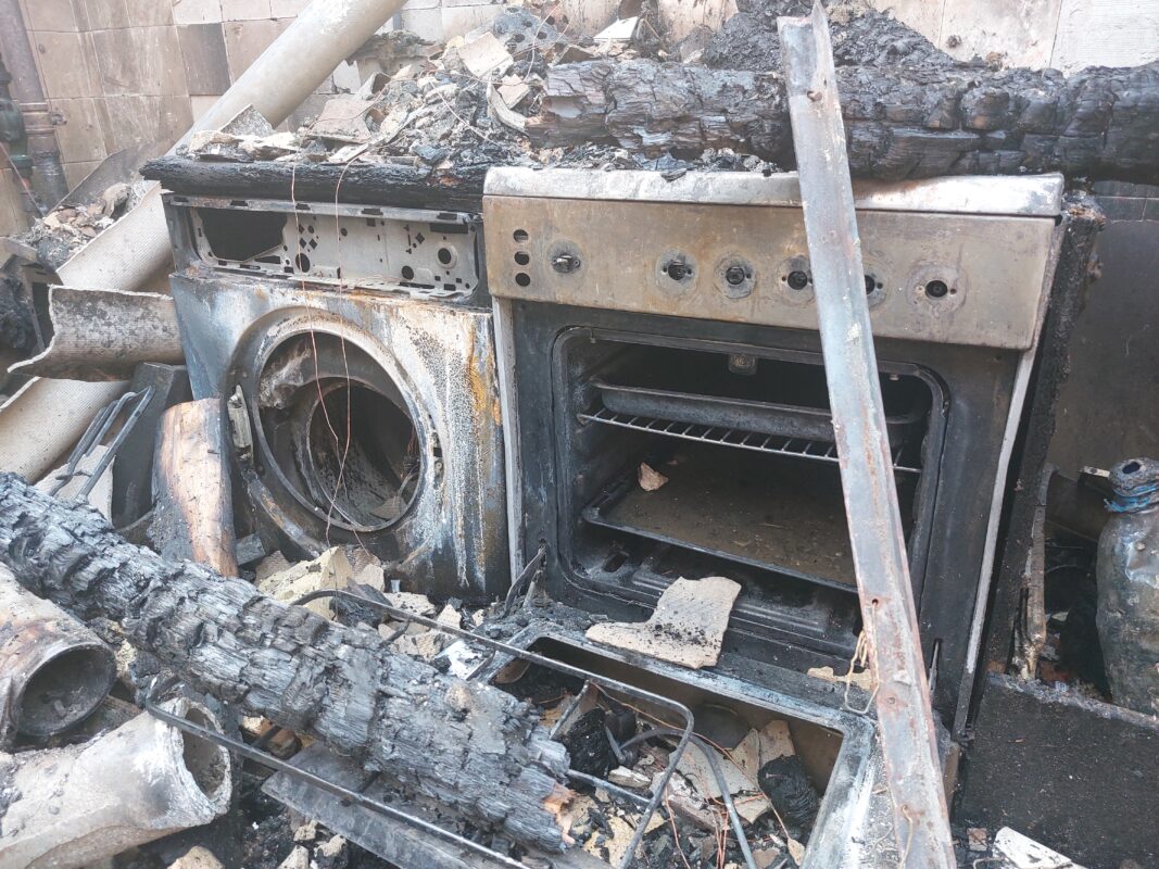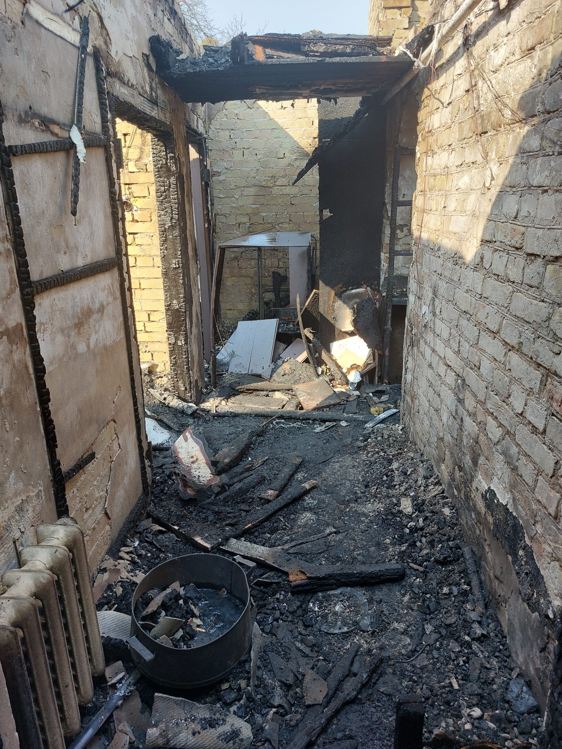 Entre los restos carbonizados todavía se adivinaban los cuartos: acá un dormitorio, allá un baño, más allá un lavadero. El techo había desaparecido. Las puertas y las paredes estaban negras, quemadas. En el suelo quedaba una mezcla espesa de ceniza, madera hecha carbón, plástico derretido y pedazos de cosas irreconocibles.